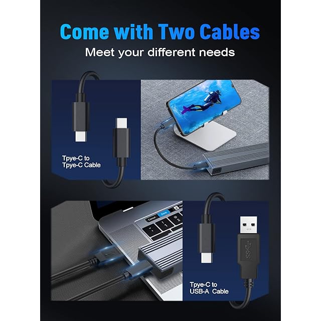 【工具不要設計】工具不要のM.2NMVeSSDケースで素早く簡単に設置できます。コンパクトなデザインで、持ち運びに便利です。1*25cm USB A-C/USB C-C 2本ケーブル付いており、PC/スマホやタブレットなどに対応でき、幅広い汎用性があります。使いやすく、追加のツールは必要ありません。新品のSSDを使用する場合、パーティションを分割する必要があります。具体的な手順については、添付の説明書を参照してください。