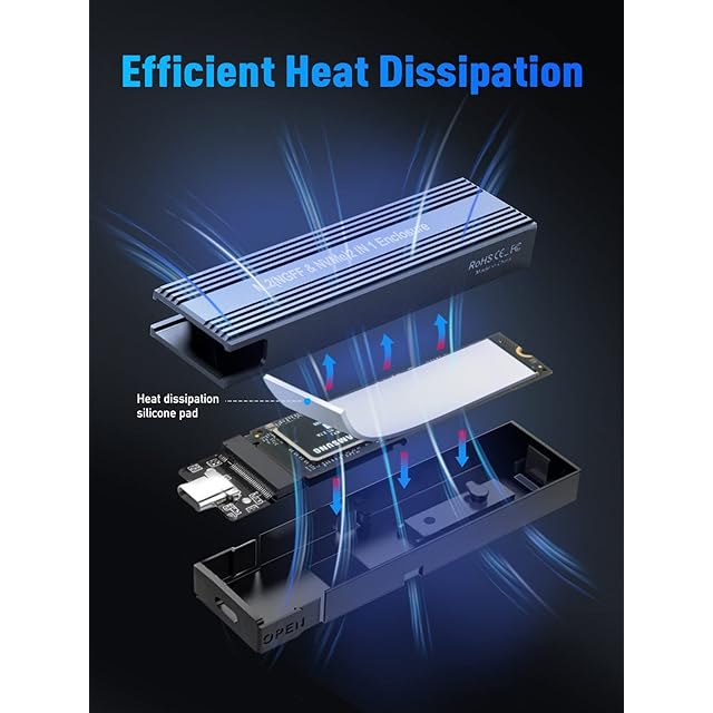 【NVME&SATA両対応 外付けケース】VCOM SSD エンクロージャーは高性能チップを搭載され、M.2 SATA/NGFFとM.2 NVMe/PCIeの両方をサポートし、M-Key NVMe/PCIe、B+M Key NVMe/PCIe、B+M Key SATA/NGFFのSSDに対応します。⭐ご注意:B-Key SATA/NGFFのSSDには非対応です。4TB容量のM.2 NVME/SATA 2230/2242/2260/2280 SSDを対応できます。