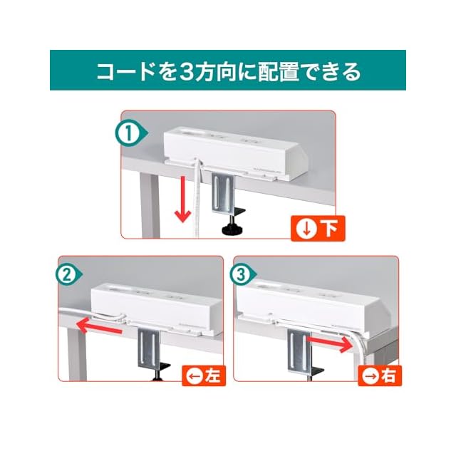 コードの出す向きを3方向に変えられて、机を壁にピッタリ設置できる