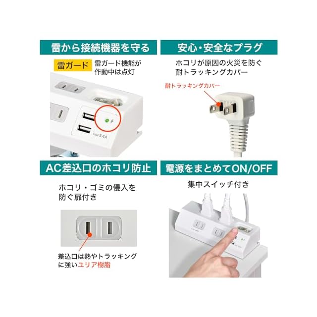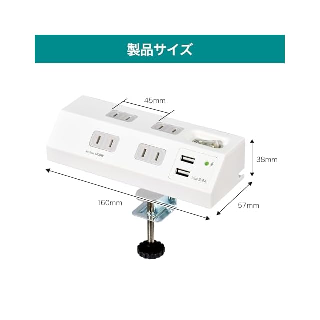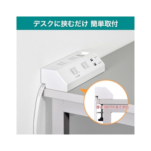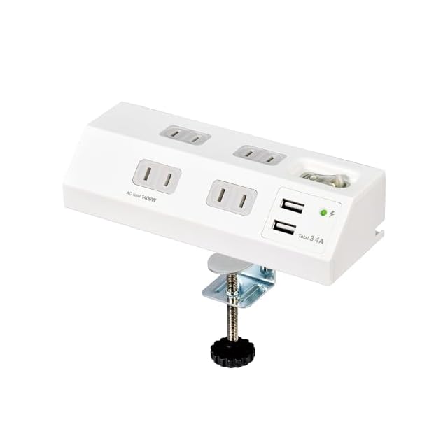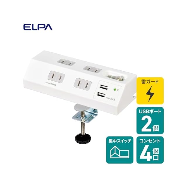 商品名:エルパ(ELPA) 卓上電源タップ USB付き クランプ固定 集中スイッチ 雷ガード付き WLS-DS4232SUA(W)