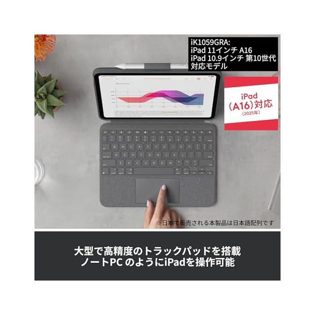 ロジクール iPad 11 インチ A16 & 10.9 インチ 第10世代 対応 トラックパッド付き キーボード付き ケース Combo Touch iK1059GRA 日本語キーボード スマートコネクタ バックライト 国内正規品 2年間メーカー オックスフォードグレー | TREND DESIGN 家電専門店
