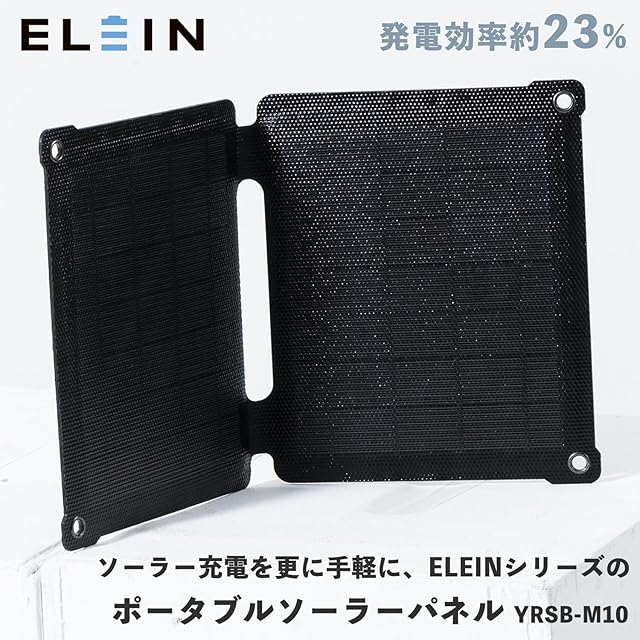 商品名:山善 ELEIN ポータブル ソーラーパネル 10W (USB-A/DC出力) ETFEコーティング 防水 防塵 小型 軽量 折り畳み式 ソーラーチャージャー カラビナ付き YRSB-M100
