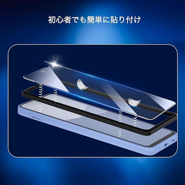 【貼付簡単・ケースと干渉しない】専用の貼り付けガイド枠が付属しており、誰でも簡単にフィルムを貼ることができます。シリコン自己吸着層で位置合わせも簡単で、気泡の入りを防ぎます。スマホ本体の縁まで適度なスペースを残すデザインとなっており、フィルムの剥がれや浮き上がりを防止します。ほとんどのケースと干渉しない設計となっております。