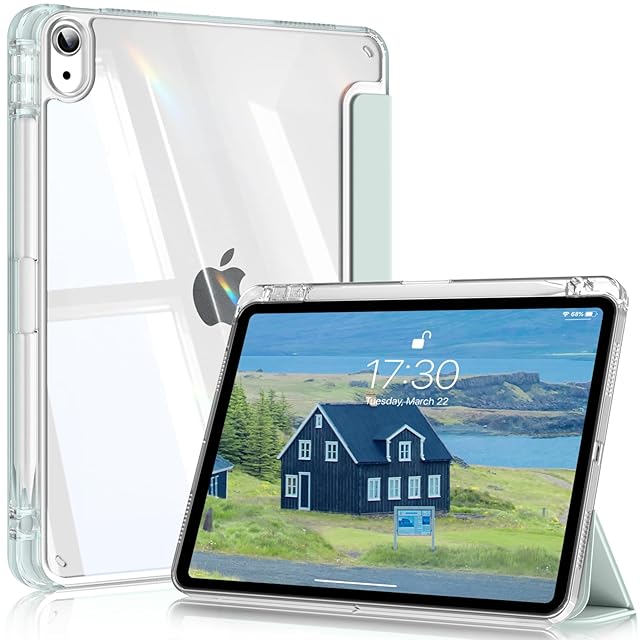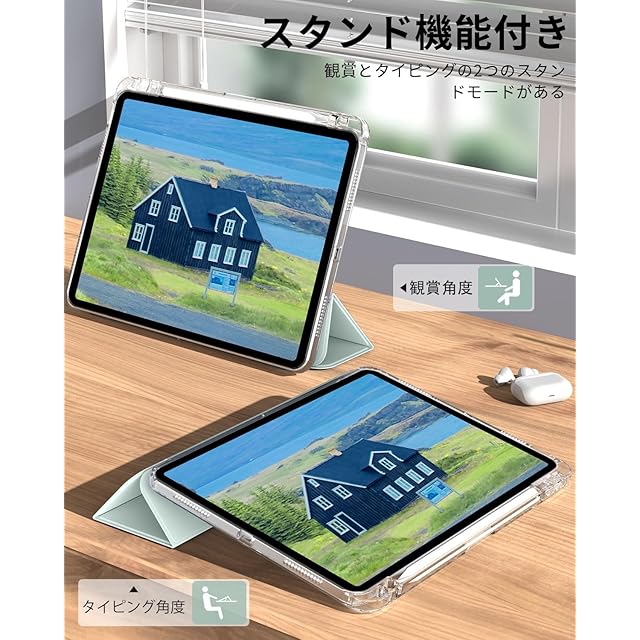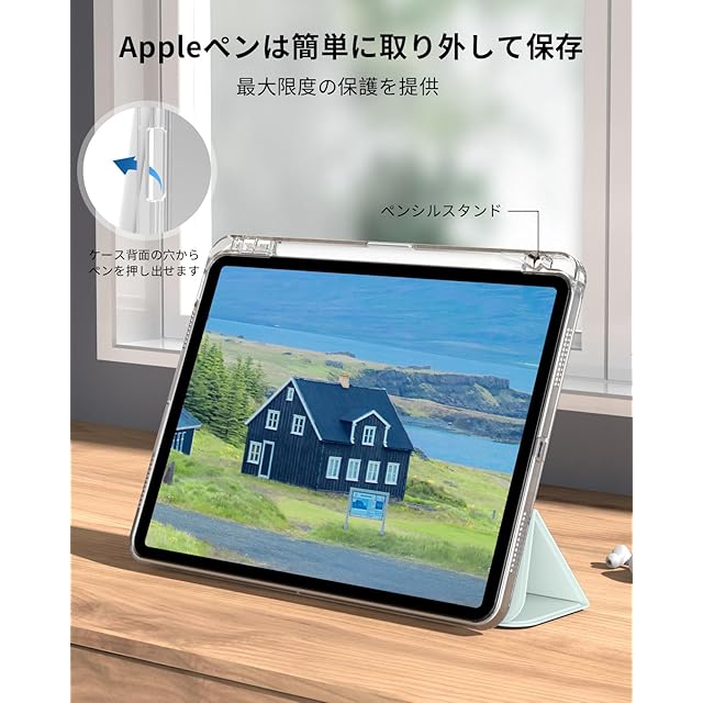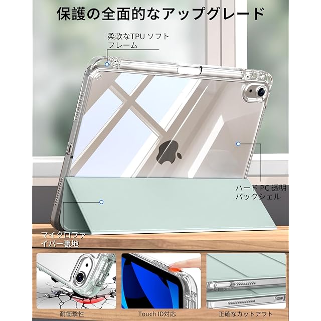 SQBEBS iPad 11世代 ケース (A16) 2025 iPad 第11/10世代 10.9インチ 2022 透明 アクリル カバー ペンシルホルダー付き 三つ折りスタンド Touch IDと オートスリープ 機能対応 超スリムス 耐衝撃 PU合成レザー カバー ライトグリーン | TREND DESIGN 家電専門店