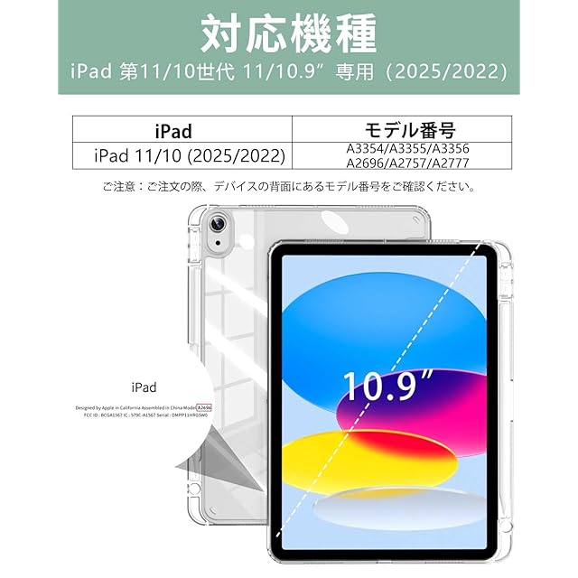 【対応機種】SQBEBS ケース iPad 11世代 (A16) 11インチ 2025 / 第10世代 10.9インチ 2022 に適用します。 (モデル番号:A3354/A3355/A3356/A2696/A2757/A2777)。ご注意:他のiPadモデルとは互換性がありません、ご注文の際、デバイスの背面にあるモデル番号をご確認ください。