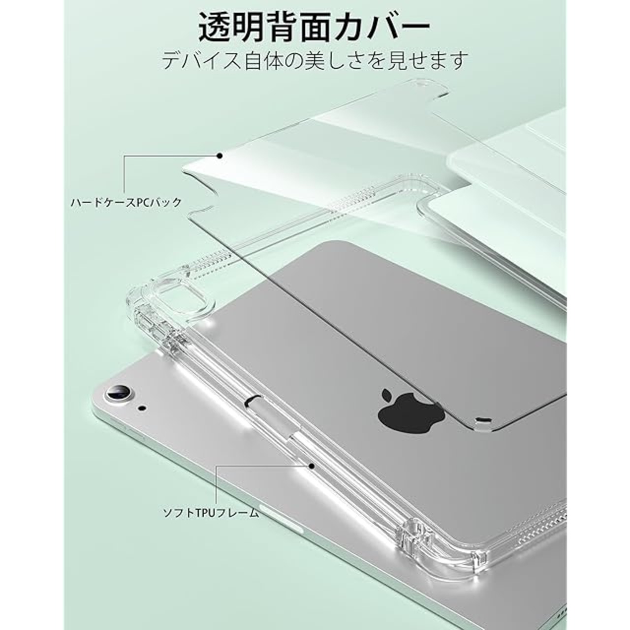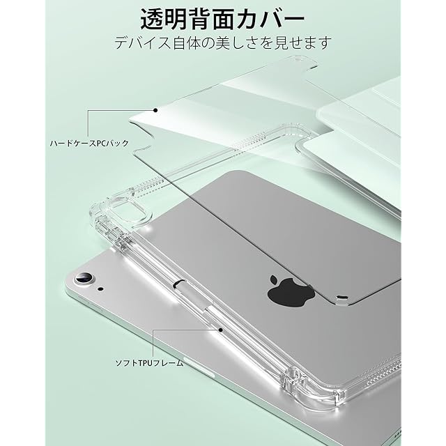 商品名:SQBEBS iPad 11世代 ケース (A16) 2025 iPad 第11/10世代 10.9インチ 2022 透明 アクリル カバー ペンシルホルダー付き 三つ折りスタンド Touch IDと オートスリープ 機能対応 超スリムス 耐衝撃 PU合成レザー カバー ライトグリーン