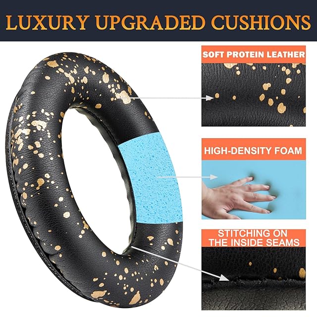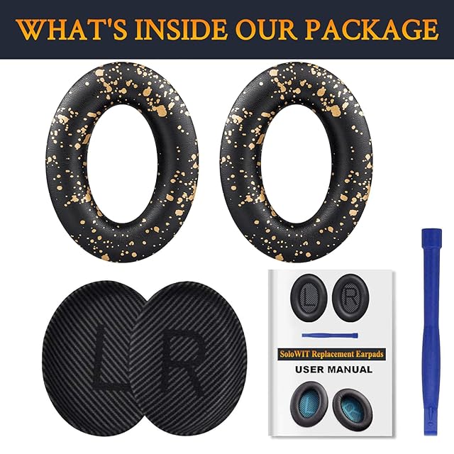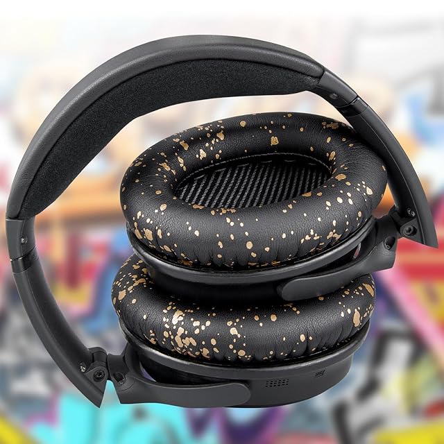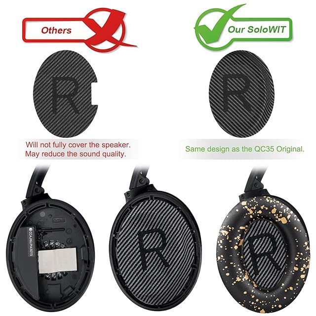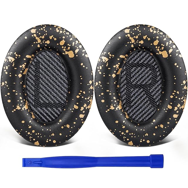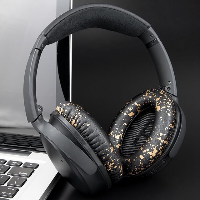 SoloWIT イヤーパッド イヤークッション 交換用 Bose QuietComfort 35 & 35ii(QC35 & QC35ii)に対応 ヘッドフォンに適用 ヘッドホンパッド 遮音 ソフトレザー 高密度フォーム (ブラックゴールド) | TREND DESIGN 家電専門店