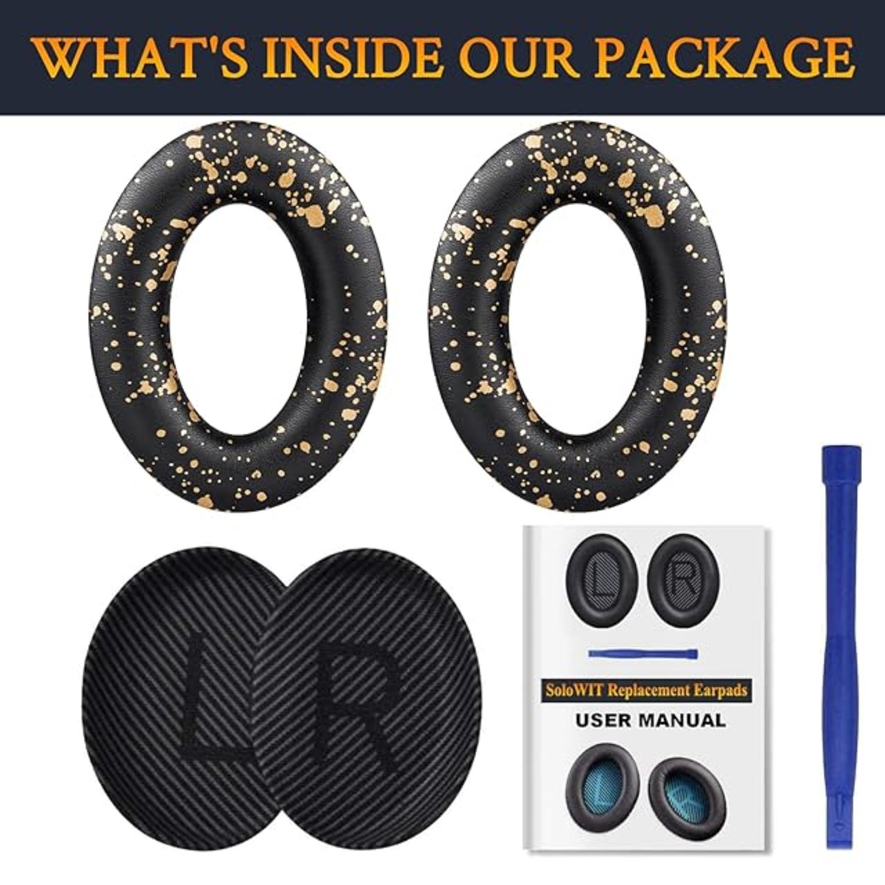商品名:SoloWIT イヤーパッド イヤークッション 交換用 Bose QuietComfort 35 & 35ii(QC35 & QC35ii)に対応 ヘッドフォンに適用 ヘッドホンパッド 遮音 ソフトレザー 高密度フォーム (ブラックゴールド)