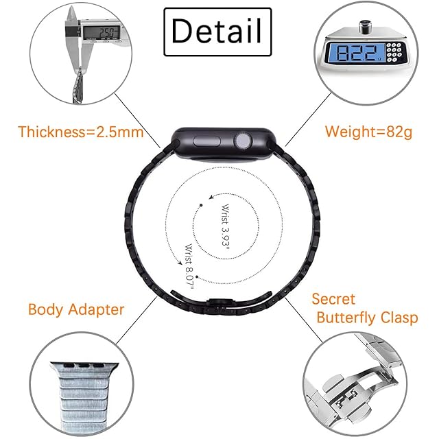 商品名:MaKTechステンレススチール金属のリンクブレスレットバンドに対応しますと互換性があるApple Watch Series 10/9/Ultra 2/SE/8/7[2024] (42mm/41/40mm,スペースグレー)