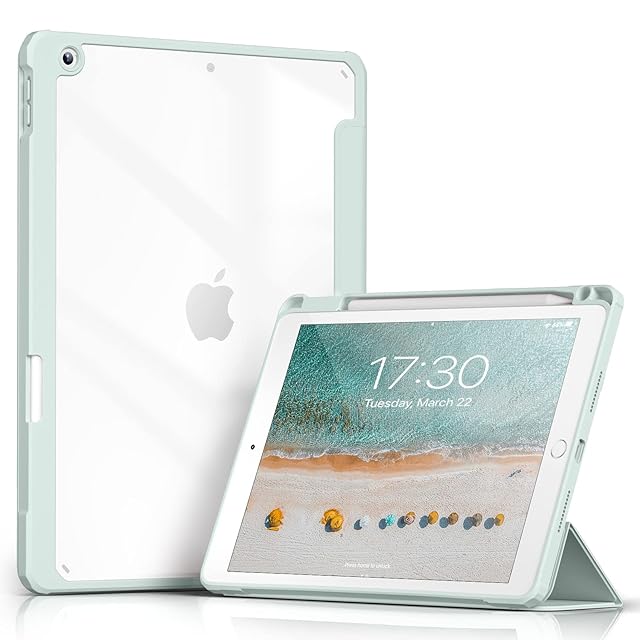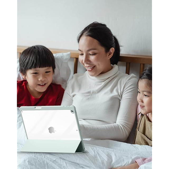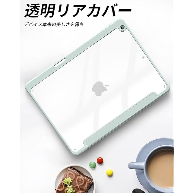 Aoub iPad 9世代 ケース 10.2 インチ iPad ケース 第9/8 /7世代 2021 2020 2019 透明バックカバー ペン収納 三つ折スタンド オートスリープ機能 軽量 薄型 傷つけ防止 PU合成レザー TPU (モデル番号A2602、A2603、A2604、A2605) ライトグリーン | TREND DESIGN 家電専門店