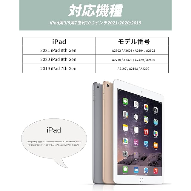 【対応機種】 iPad 10.2インチ 第9世代 2021(モデル番号:A2602/A2603/A2604/A2605)、iPad 10.2インチ 第8世代 2020 (モデル番号:A2270/A2428/A2429/A2430)、iPad 10.2インチ 第7世代 2019 (モデル番号:A2197 / A2198 / A2200) 専用スマートケース、カバー。(ご注意:iPadの他のモデルには対応していません、ご注文の際に、お手元機種の背面にあるモデル番号を確認をお願い致します。)