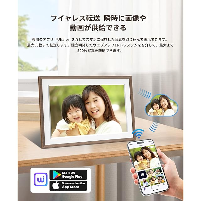 【スマホWi-Fi高速転送・パソコンバッチ転送】専門無料のアプリ「Uhale」を提供し、Android或いはiOSもダウンロードできます。スマホで一度に最大100枚の写真を選ぶことができて、分次送信の悩みがありません。パソコンで最大500枚まで送信できます。フォーマットの問題を心配する必要はありません。どのフォーマットでもフォトフレームから表示可能なフォーマットに変換できます。フォーマット:jpeg/jpg/png。