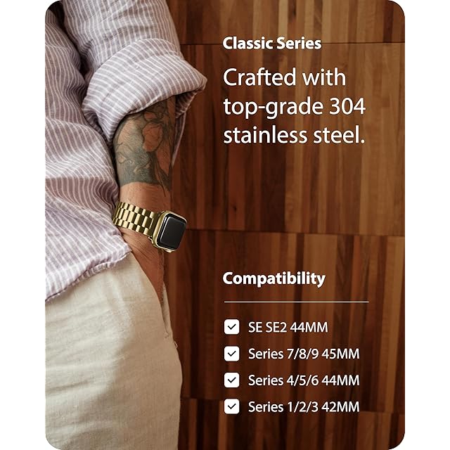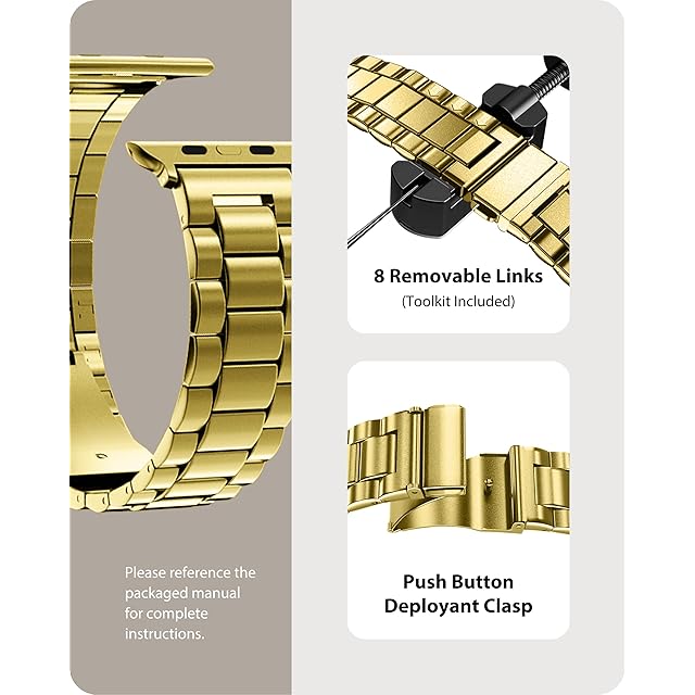 商品名:for Apple Watch バンド 45mm 44mm 42mm 保護ケース付き ステンレス製 アップルウォッチ 交換ベルト Apple Watch 9/8/7/SE2/6/SE/5/4/3/2/1対応 iWatch バンド ビジネス おしゃれ 通勤 長さ調整器具付き(42/44/45mm, ゴールド)