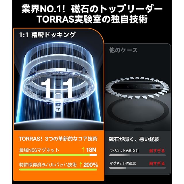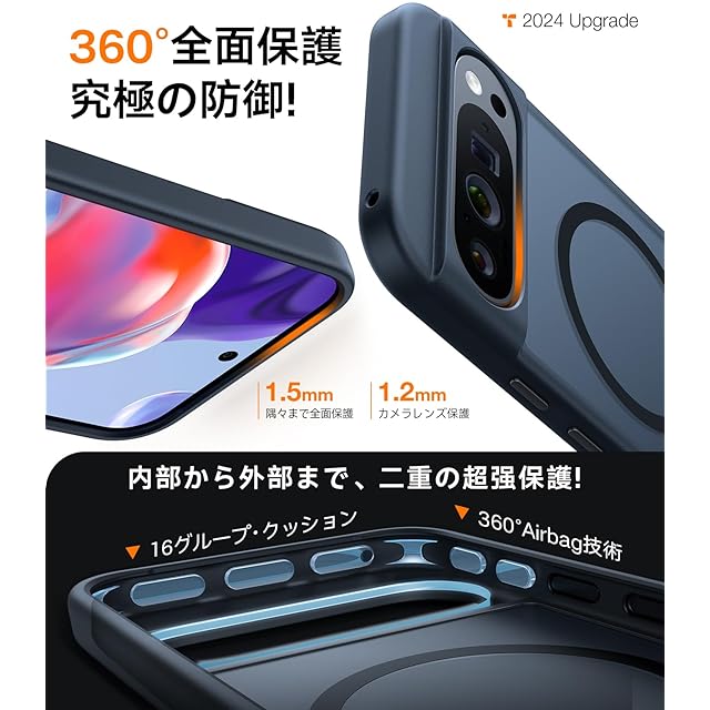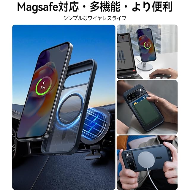 【磁石高耐久進化!吸力を60%向上!】このPixel 9pro XLケースは、特許の磁石技術を採用しており、スマホの磁気リングと完璧に結合し、磁力を大幅に向上させています。また、この磁石技術は耐久性が高く、磁力も強いため、Pixel 9pro XLをしっかりと保持することができます。さらに、模倣できない磁石配置技術も採用しており、通常の磁石吸着ケースでの磁石の脱落問題を解決しています!対応機種:Google Pixel 9pro XL用