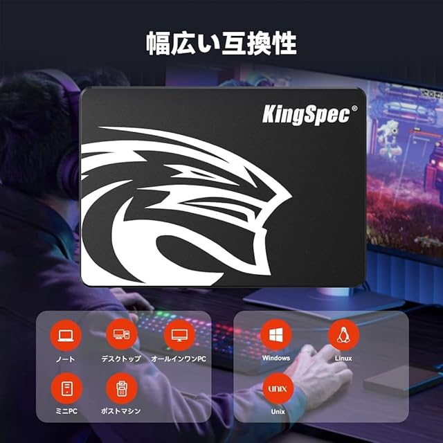 幅広い互換性: SATA III SSDは、デスクトップ、ラップトップ、オールインワンPCと互換性があり、Windows、Linux、Mac OSなどの幅広いオペレーティングシステムをサポートしているため、さまざまなデバイスのニーズに対応します。