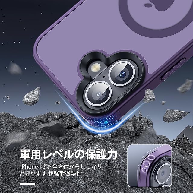 iPhone 16 用 ケース MagSafe対応 ワイヤレス充電 磁気ケース 耐衝撃性 米軍MIL規格の保護 傷に強い背面 6.1インチ