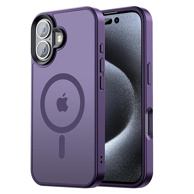 【米軍規格・MagSafe対応】Gtsoho iPhone 16 用 ケース 半透明 マグネット搭載 ワイヤレス充電 耐衝撃 耐久性 全面保護 黄ばみなし ストラップホール付き イフォン16用 カバー マグセーフ対応 ダークパープル | TREND DESIGN 家電専門店