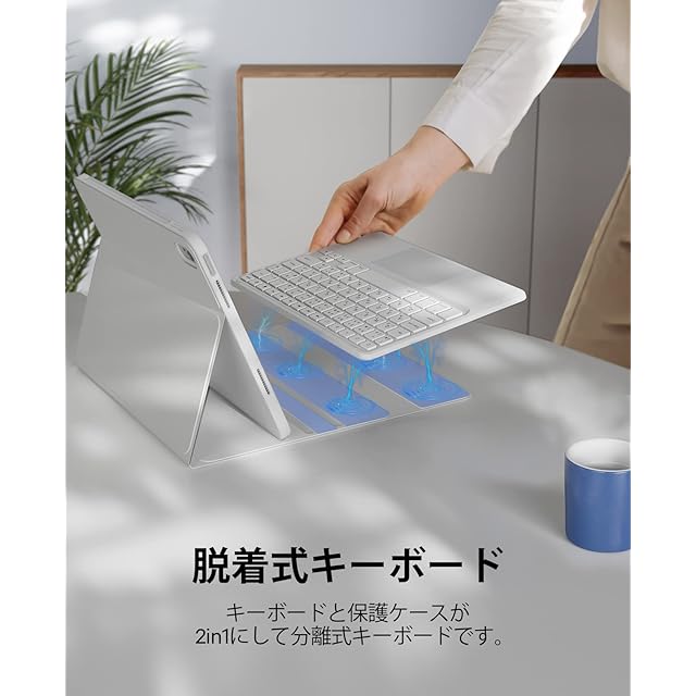 商品名:Earto for iPad 11世代 キーボード A16 2025 ipad 10世代 キーボード 10.9 タッチパッド付き JIS基準日本語配列 2台デバイスマルチペアリング ipad 11世代 ケース 脱着式 多角度調整 ペンシルホルダー付き スマート軽量 薄型ケースtype-c充電式 マグネット付き A2696/A2757/A2777対応 ホワイト
