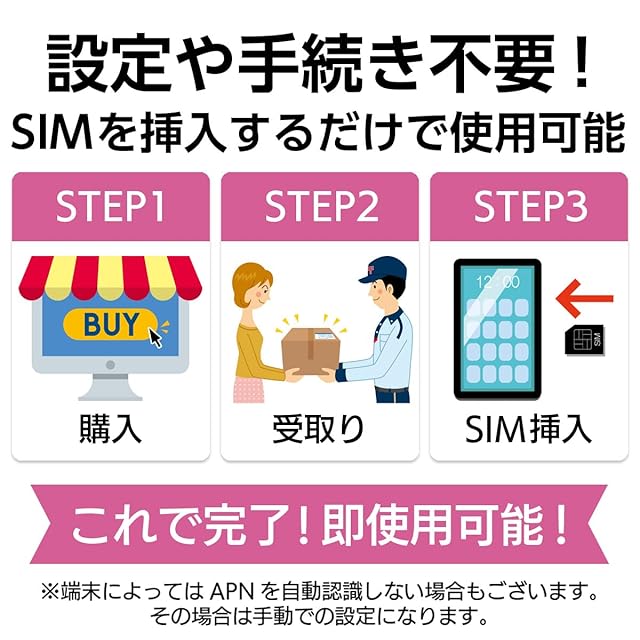 【APN設定不要】ios(iPhone)端末にSIMを挿すだけで利用可能。※(Android端末はAPN設定必要)
