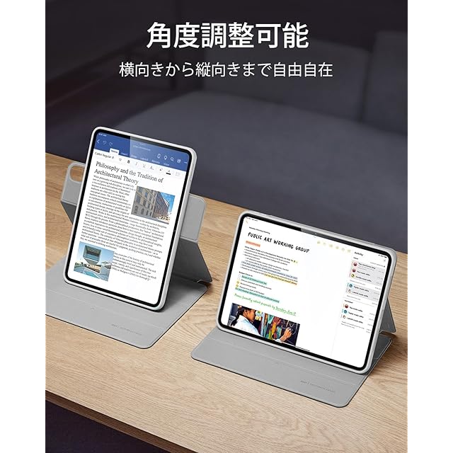 ESR iPad Air 11インチ ケース (M3/M2、2025/2024) iPad Air 第5/4世代 ケース(2022/2020)専用 Pencilホルダー付き 取り外し可能マグネットカバー 縦置き/横置きスタンド Pencil Pro/USB-C完全対応 Rebound 360シリーズ グレー | TREND DESIGN 家電専門店