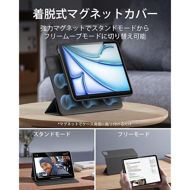 ESR iPad Air 11インチ ケース (M3/M2、2025/2024) iPad Air 第5/4世代 (2022/2020) 専用 取り外し可能マグネットカバー 縦/横向きスタンド ブラック Pencil Pro/USB-C完全対応 自動ウェイク/スリープ ブラック | TREND DESIGN 家電専門店