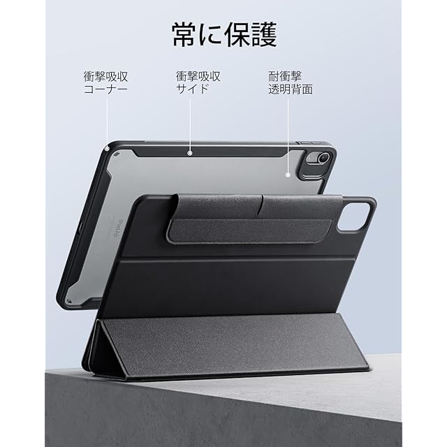 商品名:ESR iPad Air 11インチ ケース (M3/M2、2025/2024) iPad Air 第5/4世代 (2022/2020) 専用 取り外し可能マグネットカバー 縦/横向きスタンド ブラック Pencil Pro/USB-C完全対応 自動ウェイク/スリープ ブラック