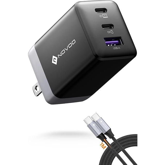 商品名:NOVOO 67W USB C 充電器 3ポート タイプC PD急速充電器【100W type-c ケーブル付き(1M) / 最軽量/超小型/GaN III技術/折畳式プラグ / PD3.0 / PPS/PSE】MacBook/NEC/AQUOS/iPad/iPhone 15/Galaxy S24/iWatch/Steam Deck/DJI MINI 3 Pro対応
