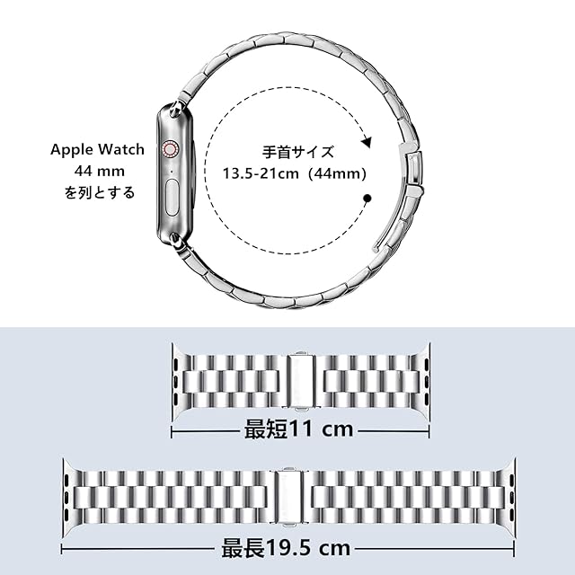 【長さ調節用の器具付き】:Apple watch seriesベルトテンレスには長さ調節用の器具が付属しており、手首のサイズに合わせてベルトの長さを調整できて便利です。ベルト調整範囲は11cm 〜 19.5cmです。 (※Apple watch 本体は含みません。)