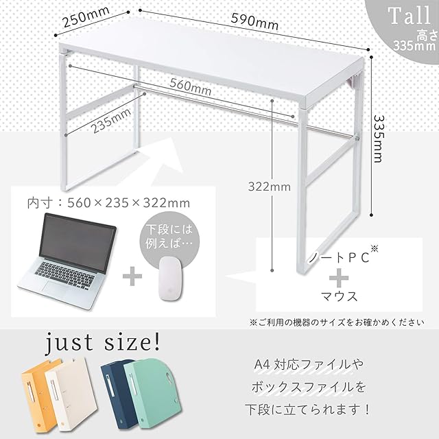 商品名:リヒトラブ パソコン台 モニター台 机上台 白 幅59×奥行25×高さ33.5cm トール 耐荷重15kg A7336-0