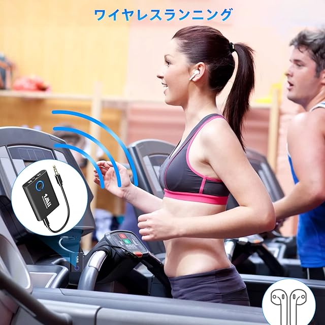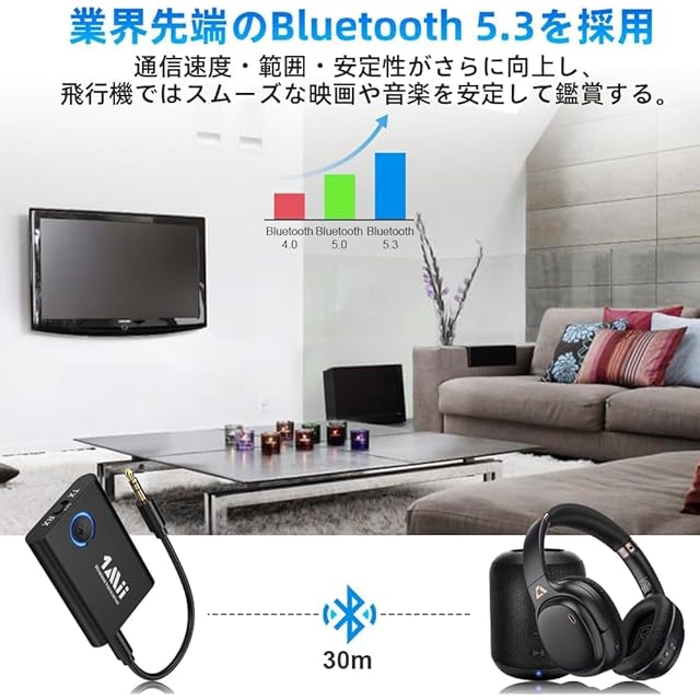 商品名:1Mii Bluetooth トランスミッター テレビ ブルートゥース レシーバー オーディオ 送信機 BT 5.3 受信機 一台二役 2台同時接続 aptX Adaptive/aptX LL 低遅延/aptX HD/AAC AUX イヤホンジャック 3.5mm 対応、 車 車載 TV/PC/スピーカー/ホーム/飛行機/ボート/ジム用、充電しながら使用可 ML301 (ブラック)