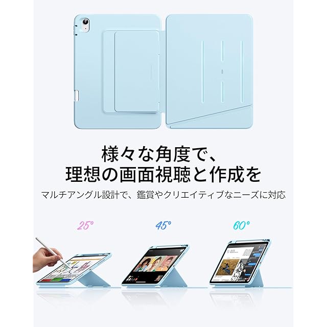 ESR iPad Air 11インチ ケース(M3/M2、2025/2024) iPad Air 第5/4世代 専用カバー(2022/2020) ペン収納 耐衝撃 縦横スタンド 自動ウェイク/スリープ Pencil Pro/USB-C ワイヤレス充電対応 マルチアングルケース 11インチ/10.9インチ Flipシリーズ スカイブルー