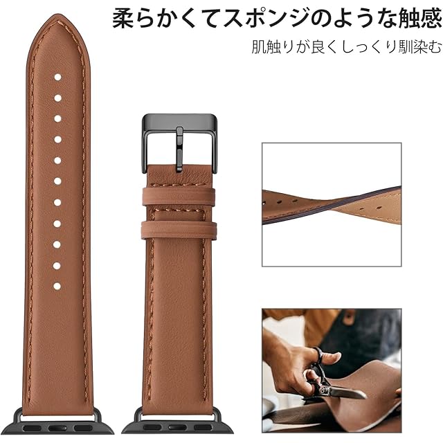 商品名:コンパチブル アップルウォッチ バンド 革 46mm 42mm 44mm 45mm 49mm 40mm 41mm 38mm コンパチブル Apple Watch バンド 本革 レザー ビジネス 男女兼用 コンパチブル iWatch Ultra/Ultra2/SE/SE2/Series10/9/8/7/6/5/4/3/2/1に対応(ブラウン・ブラック)