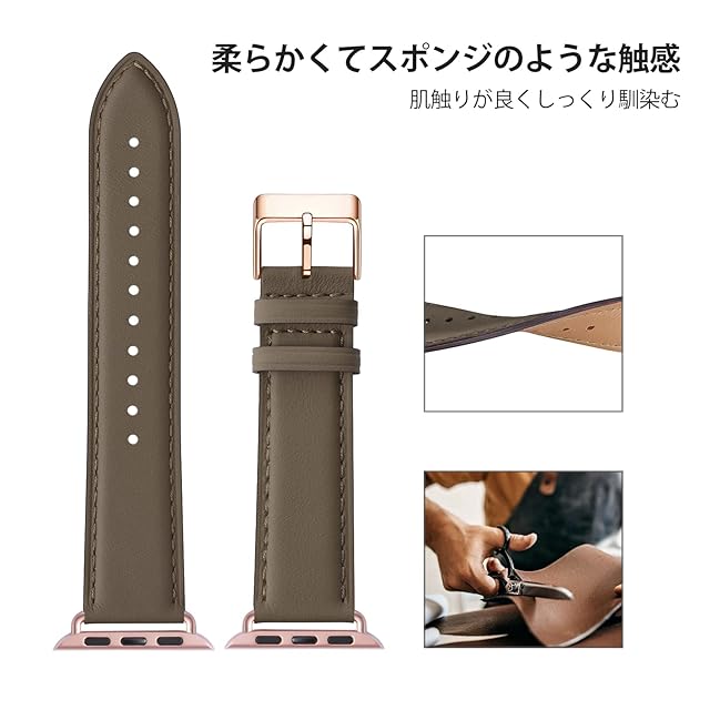 商品名:コンパチブル アップルウォッチ バンド 革 46mm 42mm 44mm 45mm 49mm 40mm 41mm 38mm コンパチブル Apple Watch バンド 本革 レザー ビジネス 男女兼用 コンパチブル iWatch Ultra/Ultra2/SE/SE2/Series10/9/8/7/6/5/4/3/2/1に対応(キャメルブラウン・ローズゴールド)