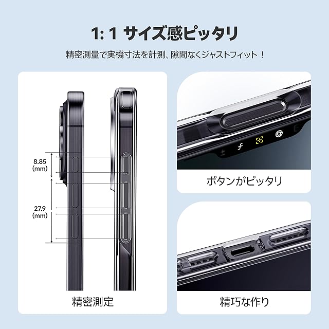 【完璧なフィット感・超精密設計】精密機械測定で厳密に寸法を測定し、誤差ゼロの1:1密着度を実現。隙間なく本体にぴったりフィットし、全てのボタンも完璧に合わせて、優れた押し心地を提供します。ケースを装着したままでもスムーズな操作が可能。精細な設計と精密な加工、厳選素材のハイブリッド構造で、驚異的な装着感を実現しました。