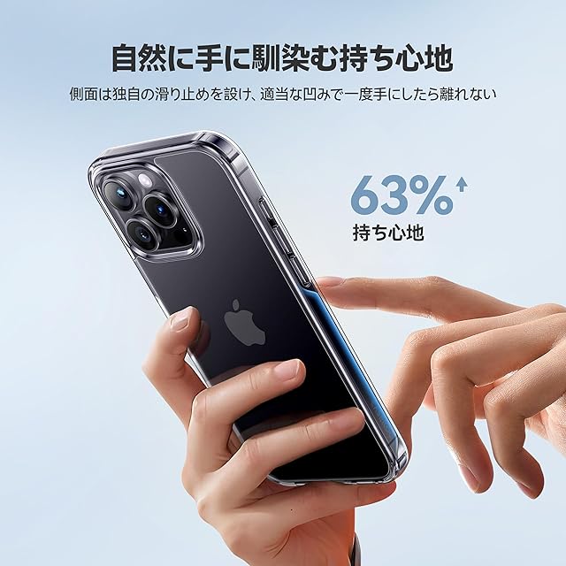 【すごく持ちやすさ・新感覚のフィット感】「窪んでいる方が持ちやすい」という発想から、人間工学に基づいて両側に適度な凹みを設計し、掌にぴったりフィット。高透明度ポリカーボネートとドイツ製TPU素材を使用し、装着・脱着も簡単。滑りにくさが5倍向上し、持ち心地が従来品より63%改善。手にしっかり馴染み、滑り落ちる心配もありません。
