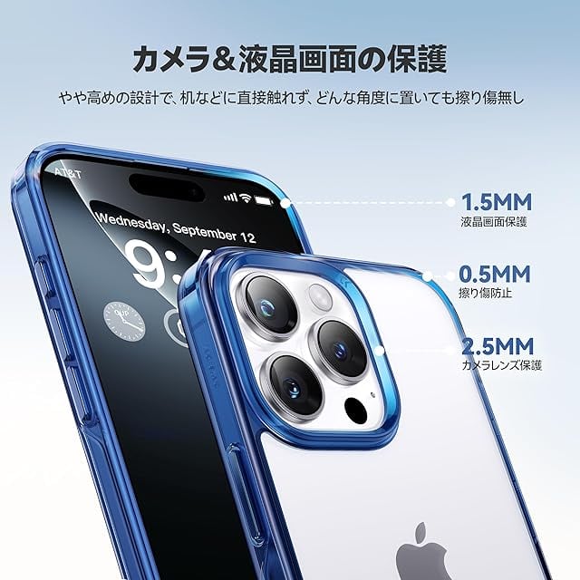 【普段使いに安心感・カメラ&画面保護も万全】液晶画面より1.5mm、カメラレンズより2.5mm高くデザインされ、さらに背面には約0.5mmの突起があり、ガタガタと不安定になりません。硬質クロムメッキ加工で耐摩耗性に優れ、どんな角度で置いても擦り傷を防ぎます。新しいスマホを細部までしっかり保護します。※ストラップホール付き