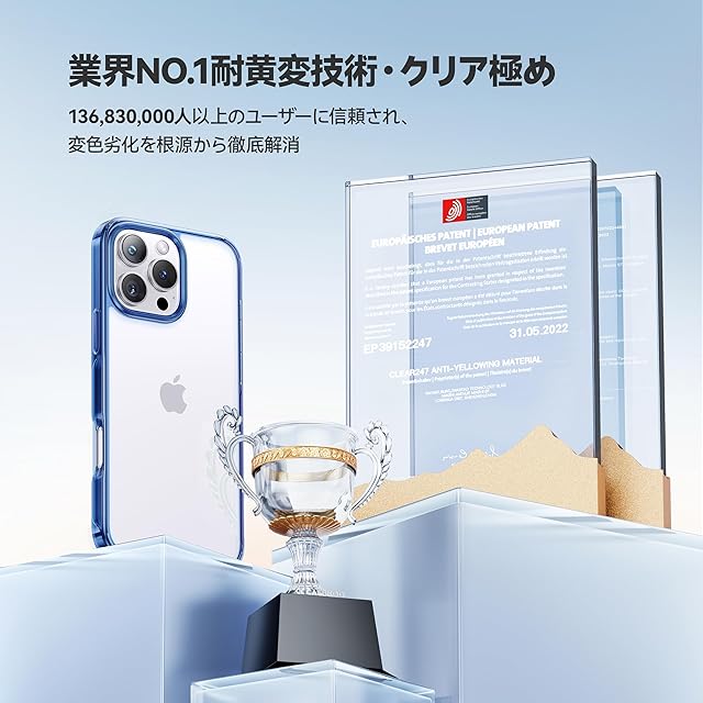 【究極の美しさ・99.99%の透明感】高透明度ダイヤPC素材を採用し、スマホ本来の美しさをそのまま引き立てます。特許取得の「CRYS-GEL」技術でケース内部に分子が浸透し、変色や劣化を徹底的に防止。180日間続く驚異的な透明感で、透明度と高級感を存分に楽しめます。抗UV性LCS認証番号:LCS210425017AR200|認証機関:LCS Compliance Testing Laboratory|認証時間:May 08, 2024