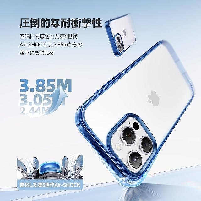 【もしもの時も安心・米軍MIL認証済み】四隅に内蔵された第5世代Air-SHOCKが、3.85mの高さからの36方向・5500回以上の落下テストを完全クリア。防弾シールドにも使用される高硬度ポリカーボネート素材と三重耐衝撃構造、U-Shockエアクッションで衝撃を98%吸収し、衝撃保護性能が30%向上しました。米軍MIL規格認証番号:GZMR220702237705|認証機関:CSTC Standards Testing Center|認証時間:Jul 20, 2024