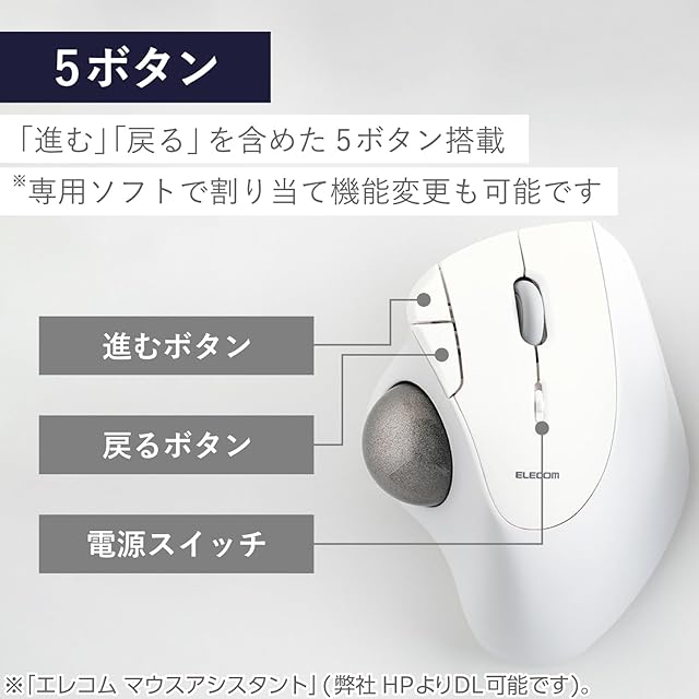 ボタンの機能割り当ては、無料でダウンロードできる「エレコム マウスアシスタント」を利用して変更可能です。