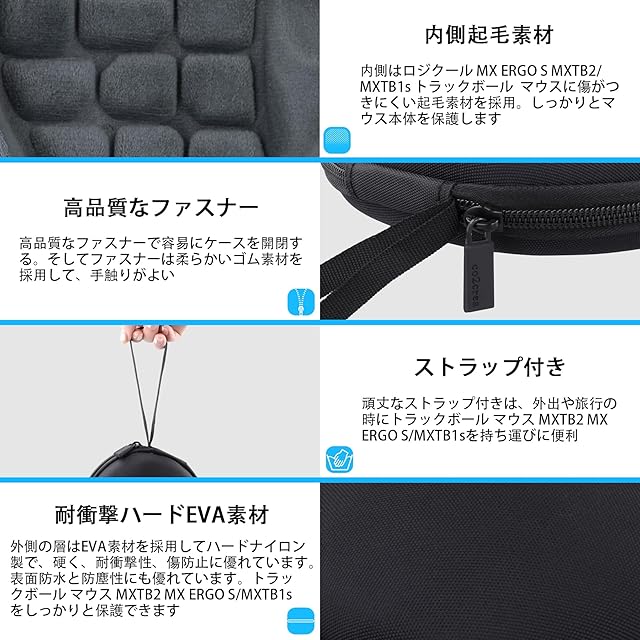 Logicool ロジクール MX ERGO MXTB2d/MXTB1s bluetooth ワイヤレス トラックボール MXTB2 MX ERGO S 便利な ハードケースバッグ 専用旅行収納 対応,ブラック-co2CREA (ケースのみ) | TREND DESIGN 家電専門店