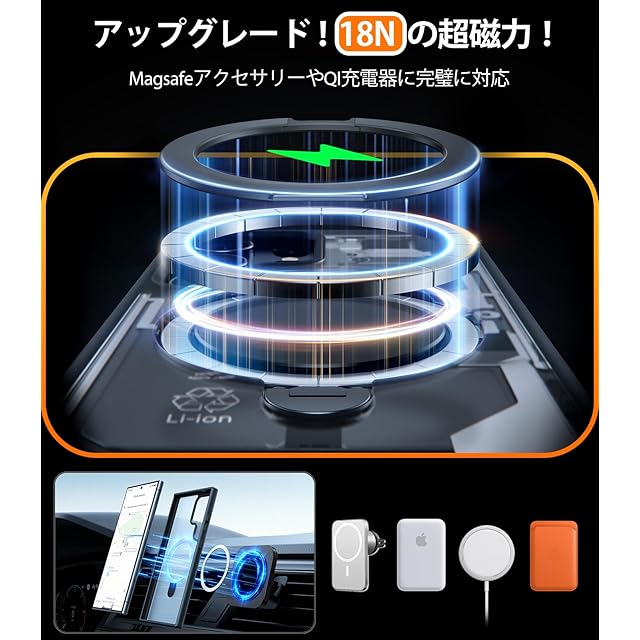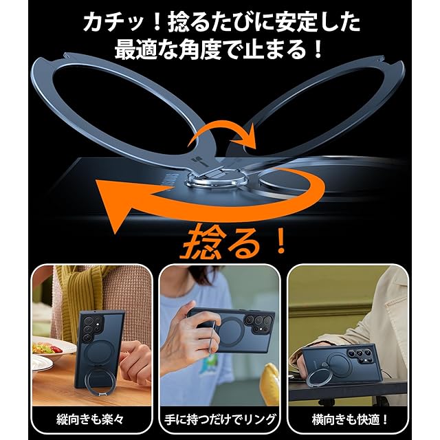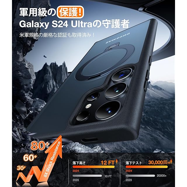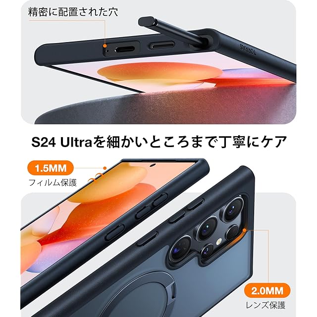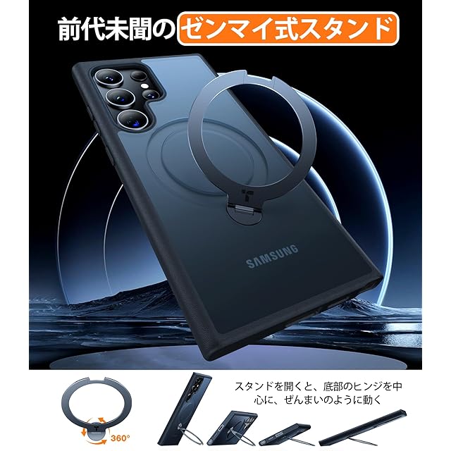 商品名:TORRAS Galaxy S24 Ultra 用 ケース【超剛性|360° 回転スタンド × 10 万回開閉耐久】MagSafe対応 米軍規格 縦横両対応 リング付き マグネット搭載 ワイヤレス充電対応 耐衝撃 防指紋 半透明 Ostand Spin ブラック