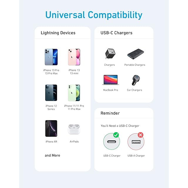 Anker 高耐久ナイロン USB-C & ライトニング ケーブル<br> 急速充電可能!高耐久 iPhone充電ケーブル<br><br> iPhoneへPD対応で急速充電<br> USB Power Delivery対応のUSB-C急速充電器(18W以上)と一緒に使用することで、iPhone 13 / 13 Pro / 13 Pro Max等に対して、わずか30分の充電時間で最大58%まで充電が可能です。(※充電器は付属しておりません)<br><br> Apple MFi認証<br> Apple社に許可を受けた証であるMFi認証を取得しており、安心してご使用頂けます。 iPhoneやiPad、iPod、その他のLightning端子機器に対して最適に動作するよう設計されています。<br><br> プレミアム設計<br> 二重に編み込まれた高耐久性ナイロンに加え、様々な加工や保護技術を駆使してケーブルの耐久性を追求、高耐久性を実現しました。<br><br> 幅広い対応機種<br> Anker 高耐久ナイロン USB-C & ライトニング ケーブルは、iPhoneやiPad、iPod、その他のLightning端子機器に対して最適に動作するよう設計されています。<br><br> 主な対応機種<br> - iPhone 13 / 13 mini / 13 Pro / 13 Pro Max / iPhone 12 / 12 mini / 12 Pro / 12 Pro Max / 11 / 11 Pro / 11 Pro Max / SE(第2世代) / XS / XS Max / XR / X / 8 / 8 Plus 他<br><br> - iPad(第9世代)/ iPad(第8世代) / iPad(第7世代) / iPad(第6世代) / iPad mini(第5世代) / iPad(第5世代) / iPad mini 4 / iPad mini 3 / iPad mini 2 / iPad mini(第1世代)/ iPad Pro(12.9インチ)(第2世代) / iPad Pro(12.9インチ)(第1世代) / iPad Pro(10.5インチ) / iPad Pro(9.7インチ) / iPad Air(第3世代) / iPad Air 2 / iPad Air(第1世代) 他<br><br> - AirPods / iPod<br><br> 注意<br><br> USB急速充電器は付属しておりません。