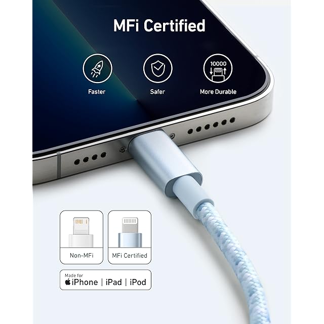 商品名:Anker 高耐久ナイロン USB-C & ライトニングケーブル MFi認証 USB PD対応 iPhone 13 / 13 Pro / 12 / SE(第3世代) 各種対応 (1.8m ブルーホワイト)