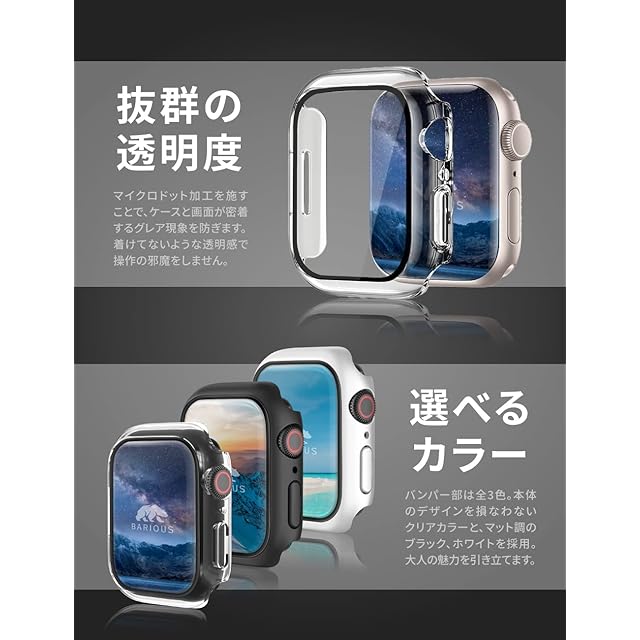 AppleWatch カバー ケース BARIOUS BARIGUARD3 for Apple Watch アップルウォッチ ケース カバー ガラス ハードケース 40mm 41mm 44mm 45mm