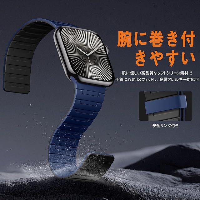 商品名:[Maledan]アップルウォッチ用 バンド マグネット シリコン 簡単装着 N54強磁力 交換ベルト 手首馴染み 42mm 44mm 45mm 46mm 49mm 38mm 40mm 41mm Compatible with Series Ultra/Ultra2/10/9/8/7/6/SE/5/4/3/2/1対応 通気性 長さ自由調節 ビジネス カジュアル