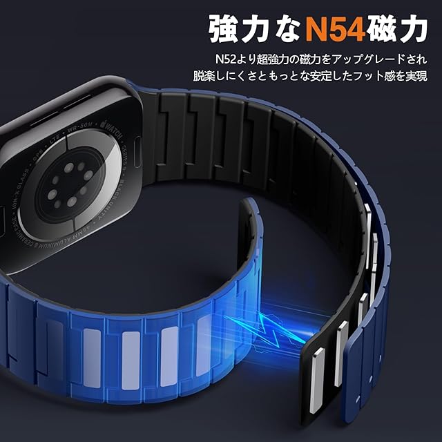【N54 磁気強化】このアップルウォッチバンドの磁気バックルは強化・アップグレードされており、通常のアップルウォッチベルトよりも強力な磁気グリップを備えています。脱落する心配はありません。同時に、マグネットロックストラップにより、長さ調節も簡単に行え、お客様の手首のサイズに合わせて調整できます。