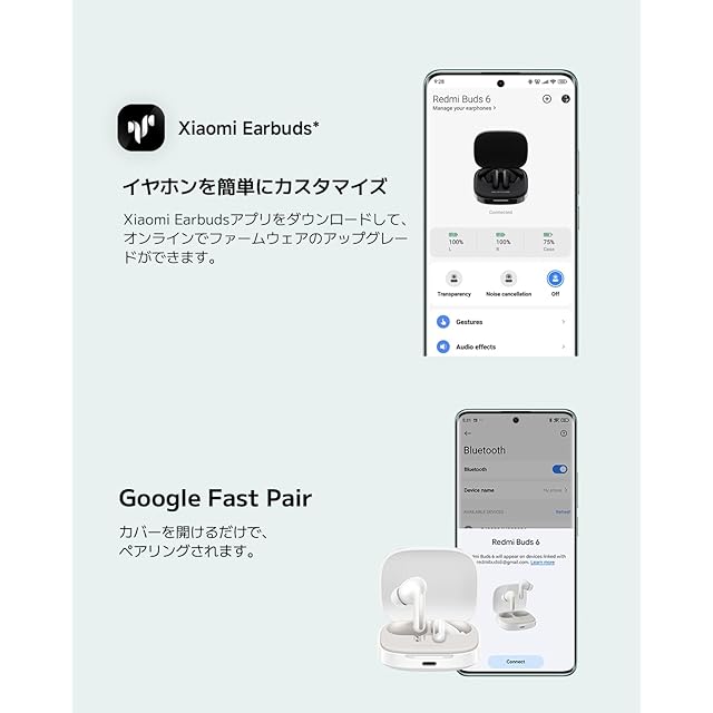 商品名:シャオミ(Xiaomi) ワイヤレスイヤホン Redmi Buds 6 薄軽ボディ 49dBアクティブノイズキャンセリング 3Dオーディオ Google Fast Pair 42時間音楽再生 マルチモードANC対応 ワンタッチ撮影モード クラウドホワイト