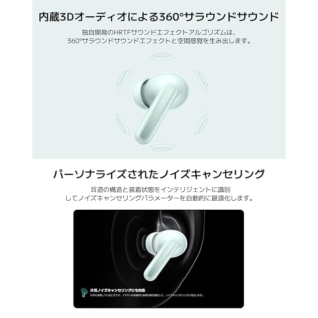 【パーソナライズされたノイズキャンセリング】耳内の状況に合わせてカスタマイズされたアルゴリズムにより、耳道の構造と装着状態をインテリジェントに識別してノイズキャンセリングパラメーターを自動的に最適化し、カスタマイズされた体験を実現します。また、サウンドIDでパーソナライズされたサウンドテストとチューニングで、あなたの聞こえ方や好みに合わせてサウンドエフェクトをカスタマイズして、自分に合ったオーディオ体験を簡単に実現できます。
