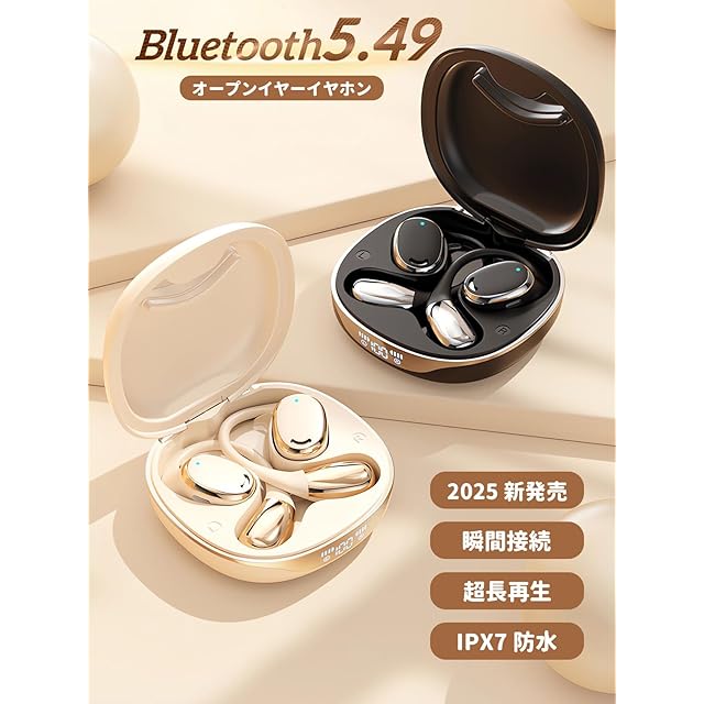 商品名:ワイヤレスイヤホン【2025年業界高水準 オープンイヤーイヤホン】業界トップ Hi-Fi音質Bluetooth5.49 瞬時接続 ブルートゥースイヤホン 最大60時間再生 骨伝導イヤホンの革新 耳掛け式 耳を塞がない 空気伝導earphone マイク付き Type-C急速充電 超軽量 LED ディスプレイ残量表示 両耳 片耳 IPX7防水 通勤/スポーツ (ブラック)