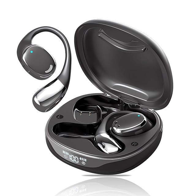 ワイヤレスイヤホン【2025年業界高水準 オープンイヤーイヤホン】業界トップ Hi-Fi音質Bluetooth5.49 瞬時接続 ブルートゥースイヤホン 最大60時間再生 骨伝導イヤホンの革新 耳掛け式 耳を塞がない 空気伝導earphone マイク付き Type-C急速充電 超軽量 LED ディスプレイ残量表示 両耳 片耳 IPX7防水 通勤/スポーツ (ブラック)